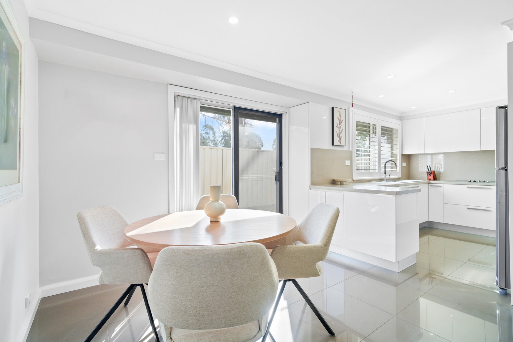 - The tiled dining area features a spacious, flowing layout that enhances both functionality and social interaction