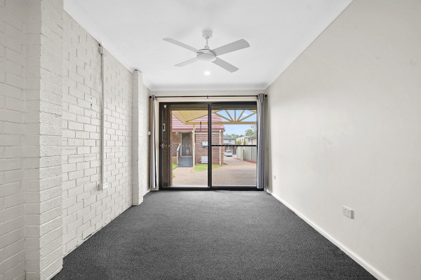 - Side double gates leading to a undercover carport to double lock up garage one garage converted to teenage retreat with carpet, ceiling fan and automatic roller door
