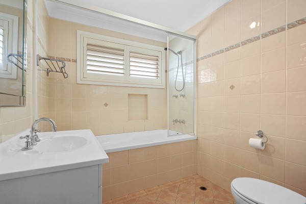 - Well maintained bathroom with combined shower/bath and floor to ceiling tiles