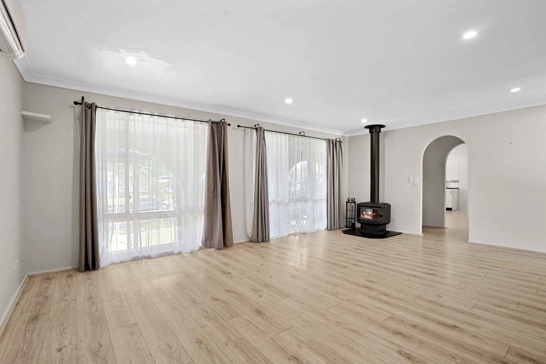 - Spacious light filled living room with LED down lights throughout, saxon wood fire place and access to yard