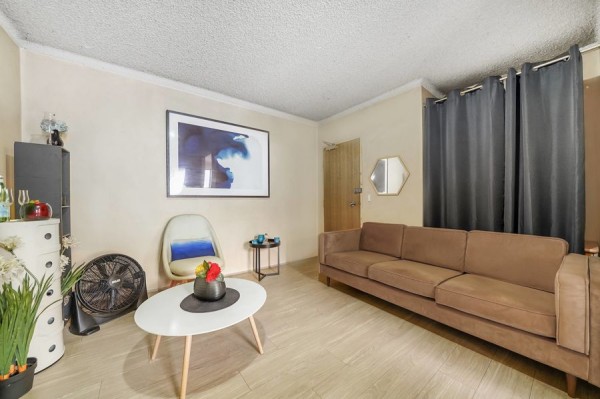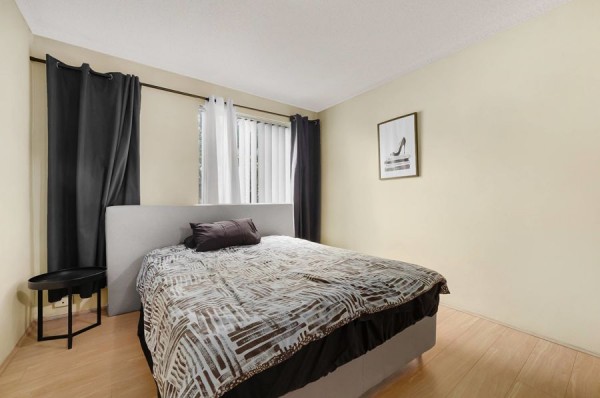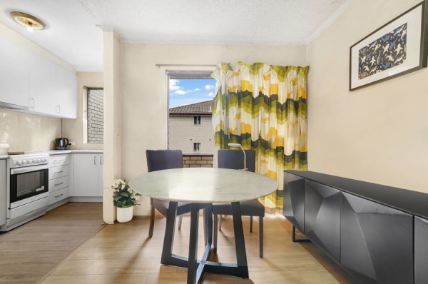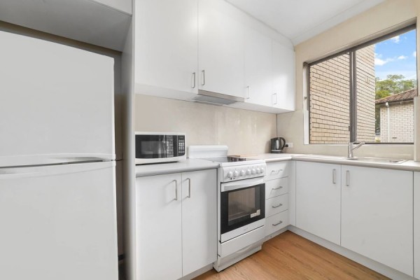 The well-maintained building boasts security gating for peace of mind, ensuring a secure environment for residents. This second-floor one-bedroom unit is a standout feature of the complex, offering a recently renovated kitchen with modern appliances, beautiful timber flooring, a private balcony, and an internal laundry facility.