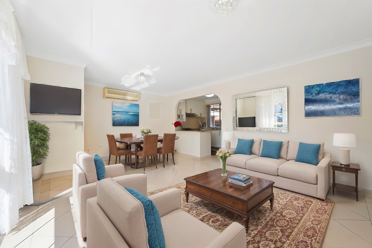 * Combined lounge and dining area with a welcoming atmosphere