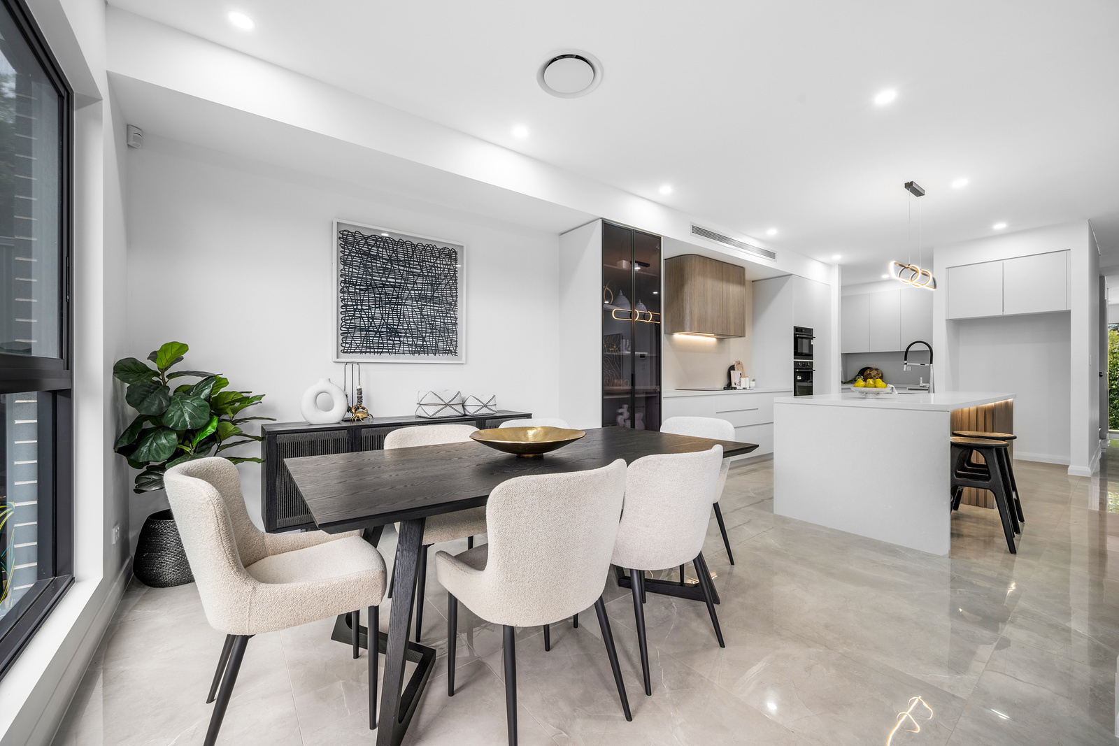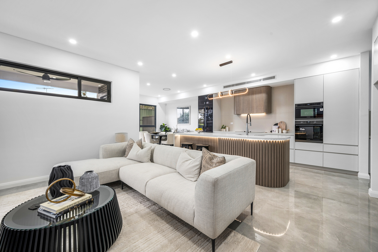 Boasting a range of architectural inclusions such as curved finishes, wide hallways, open-plan staircase, premium easy-care flooring and multi-zone ducted air-conditioning throughout, which adds a unique touch of class to every room.