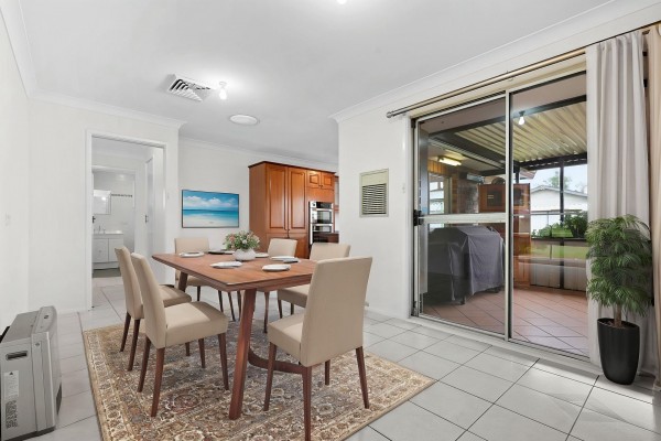 - Dining room off kitchen including gas bayonet connection and Rinnai split system air-conditioner