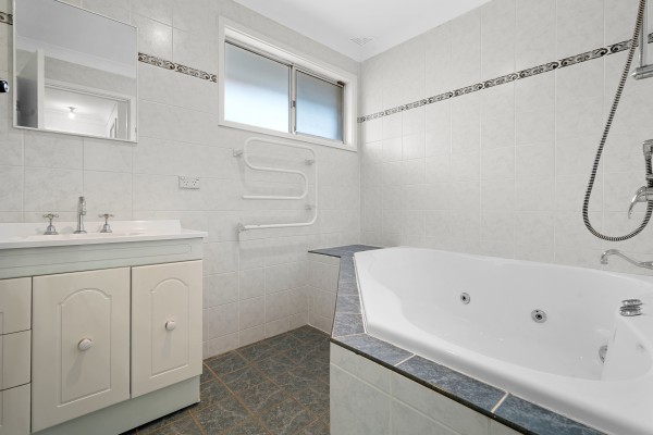- Well appointed main bathroom with corner spa bath tub/shower, floor to ceiling tiles and seperate toilet