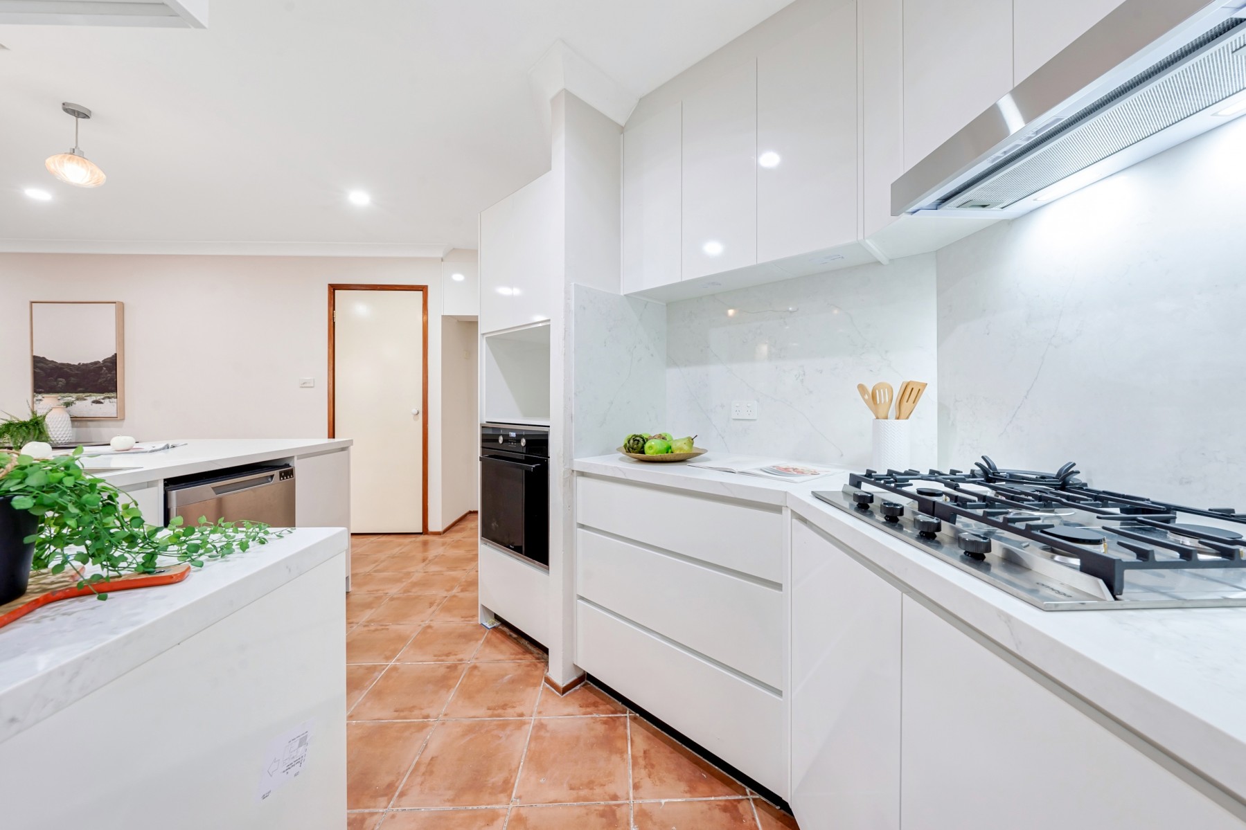 • Brand New gas cooktop kitchen with 40mm Benchtop, Stone splashback, Brand new stainless steel appliances, dishwasher, and ample storage