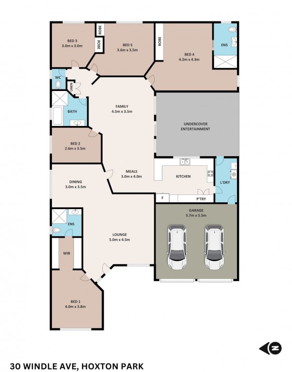 • 5 generously sized bedrooms, all with built-in robes