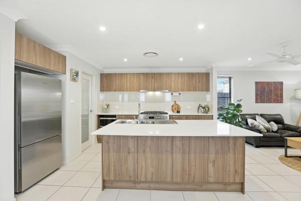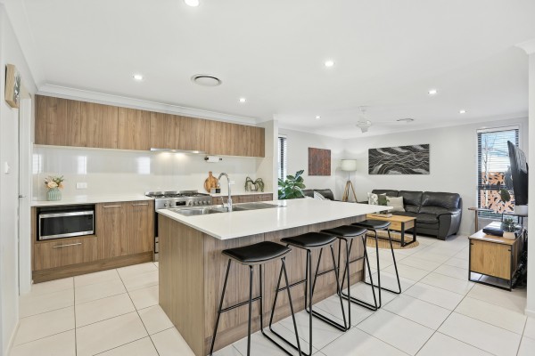 Designed with intention, the home's open-plan living and dining areas are bathed in natural light and seamlessly connect to a gourmet kitchen complete with stone benchtops, stainless steel appliances, and ample storage - perfect for everyday living and effortless entertaining.