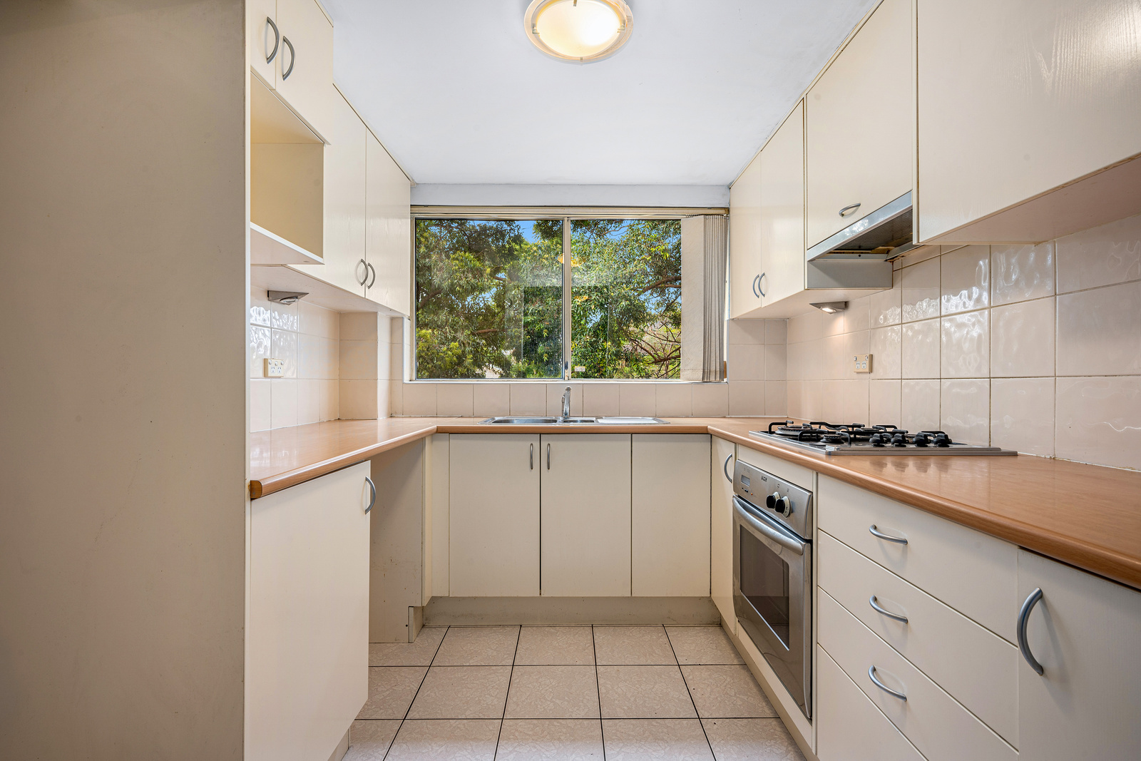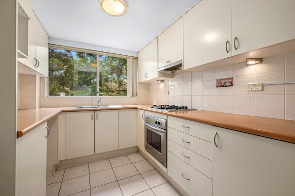 * Light-filled kitchen equipped with gas cooking
