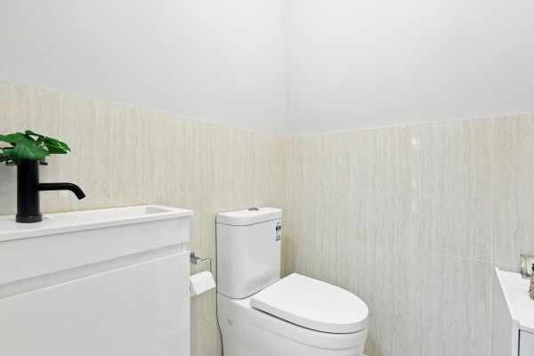~ Well-appointed and spacious powder room on the lower level, perfect for guest use.