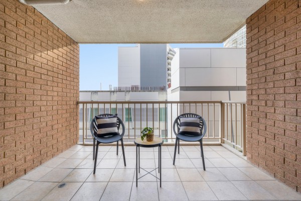 - Private covered sunlit east-facing balcony