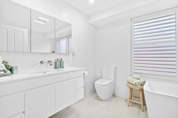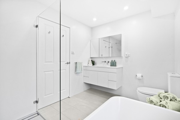 - Quality renovated bathroom with freestanding bath tub, frameless shower screen and tiled from floor to ceiling