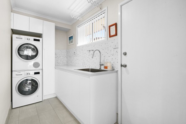 - Light filled family room to back of property with bay window & access to the renovated laundry with caesarstone benchtops, utility sink, storage cupboard and external access to outdoor clothesline