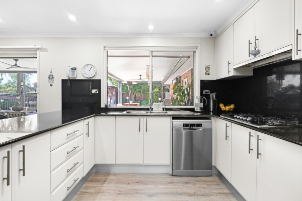 - Updated kitchen with granite benchtops, double sinks with filtered water tap, Ariston 5 burner gas cook top, AEG oven, Panasonic microwave and bosch dishwasher & large butlers pantry with large bench and cupboard space