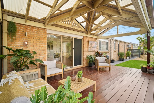 - Spacious timber decked entertaining area, perfect for gatherings, while still offering a grassy yard for the kids to play and enjoy