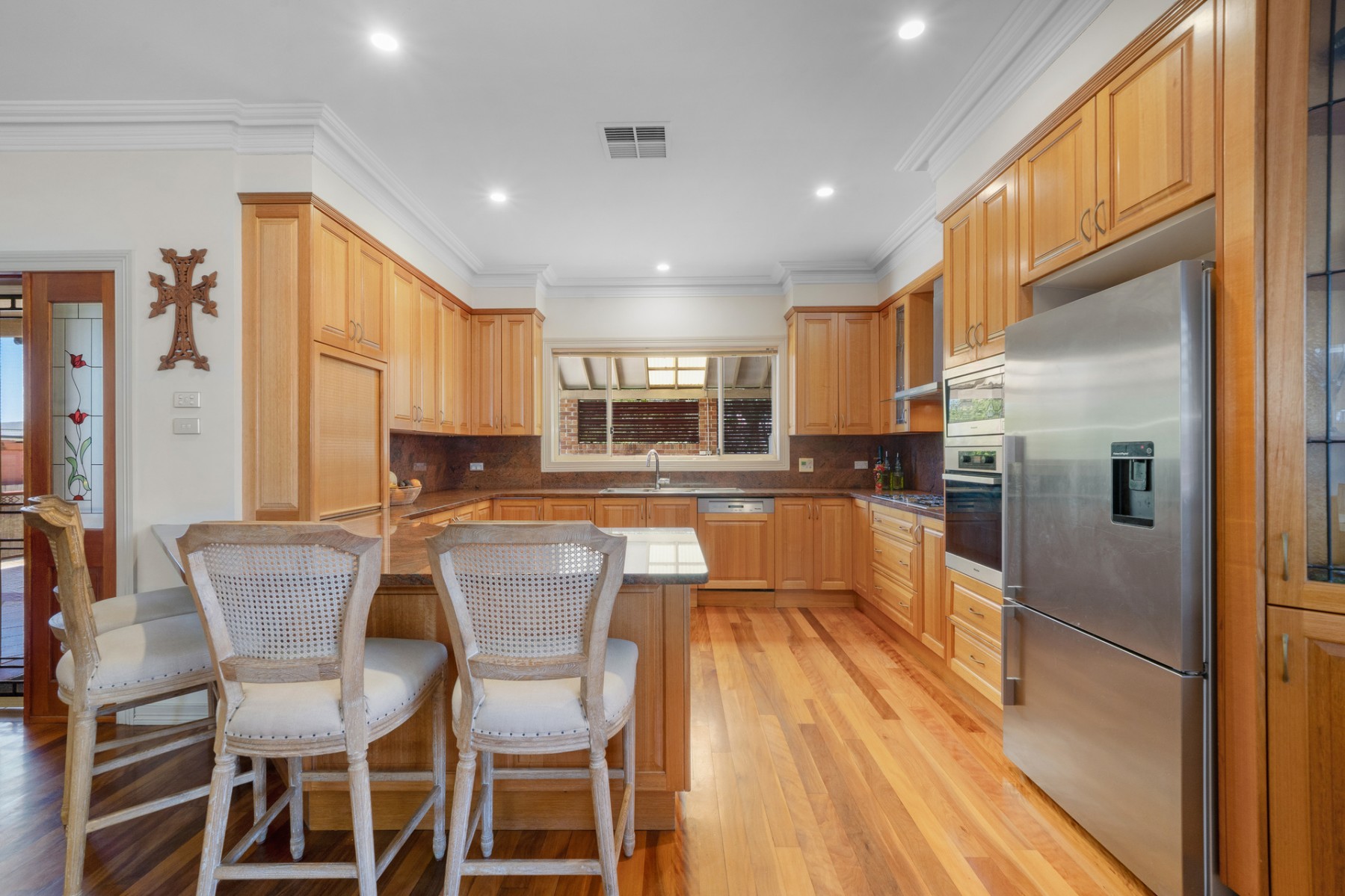 - Timeless timber kitchen with gas cooking and integrated dishwasher