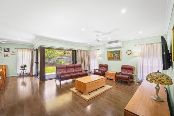 - Open-plan living and dining area filled with natural light & split-system air-conditioner, complemented by a large modern kitchen