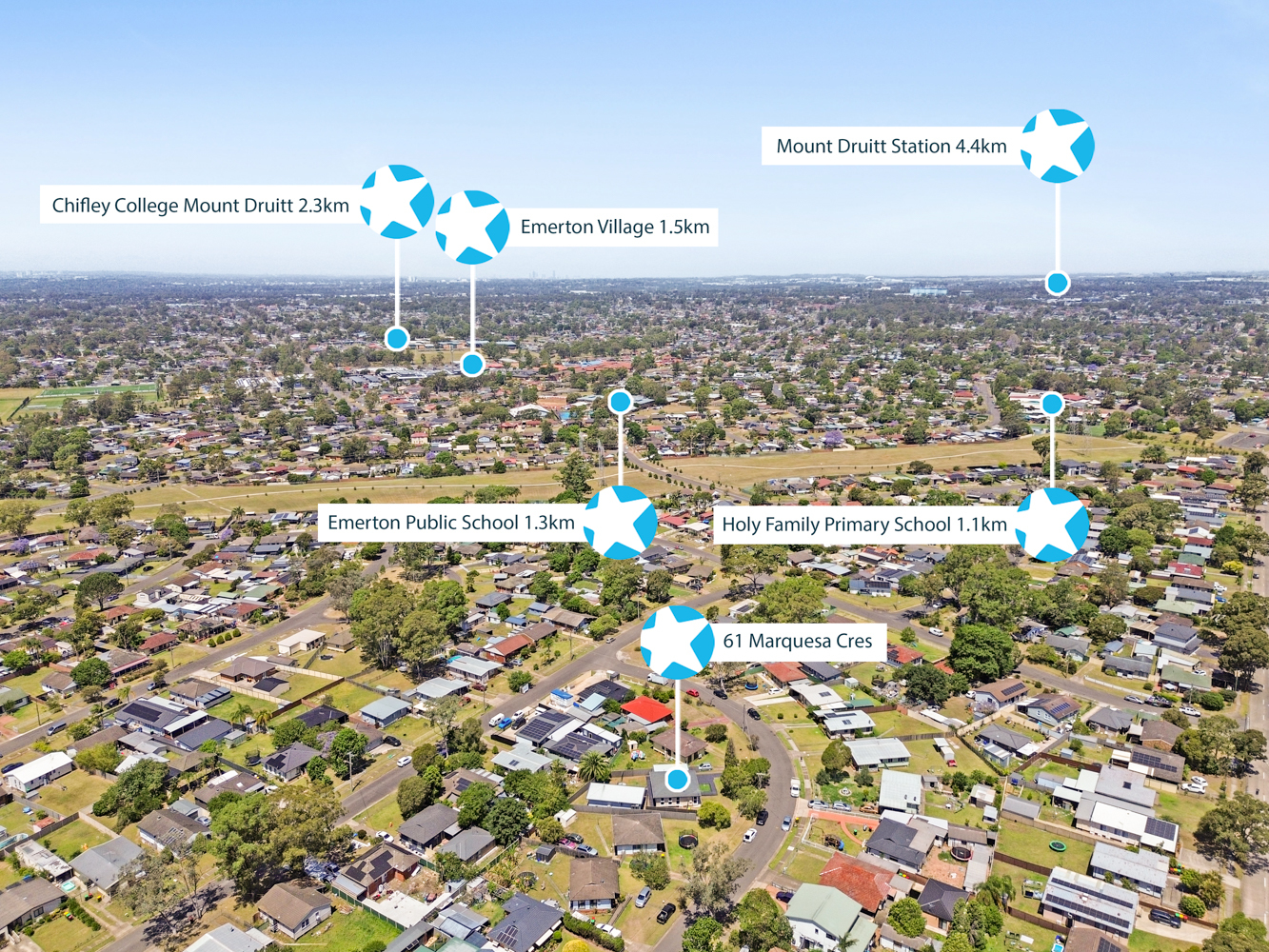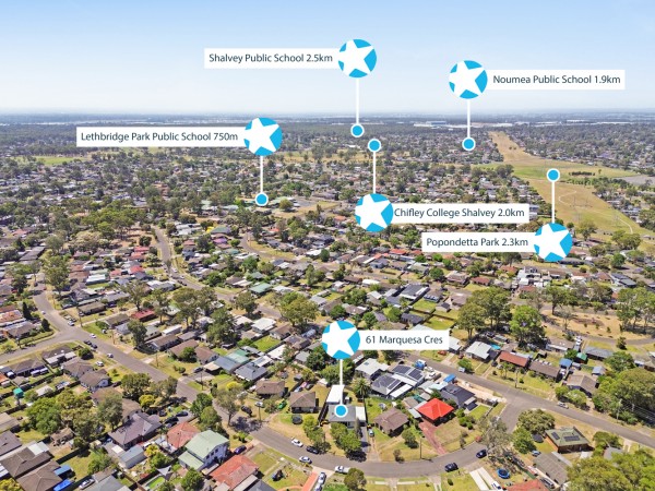 - Lethbridge Park Public School approx 450m - Emerton Public School approx 900m - Chifley College Shalvey Campus approx 1.8km - Emerton Shopping Village approx 1.7km - Popondetta Park approx 2.4km - St Marys Train Station approx 4.7km - St Marys Shopping Village approx 5.8km - Westfield Mount Druitt approx 4.1km
