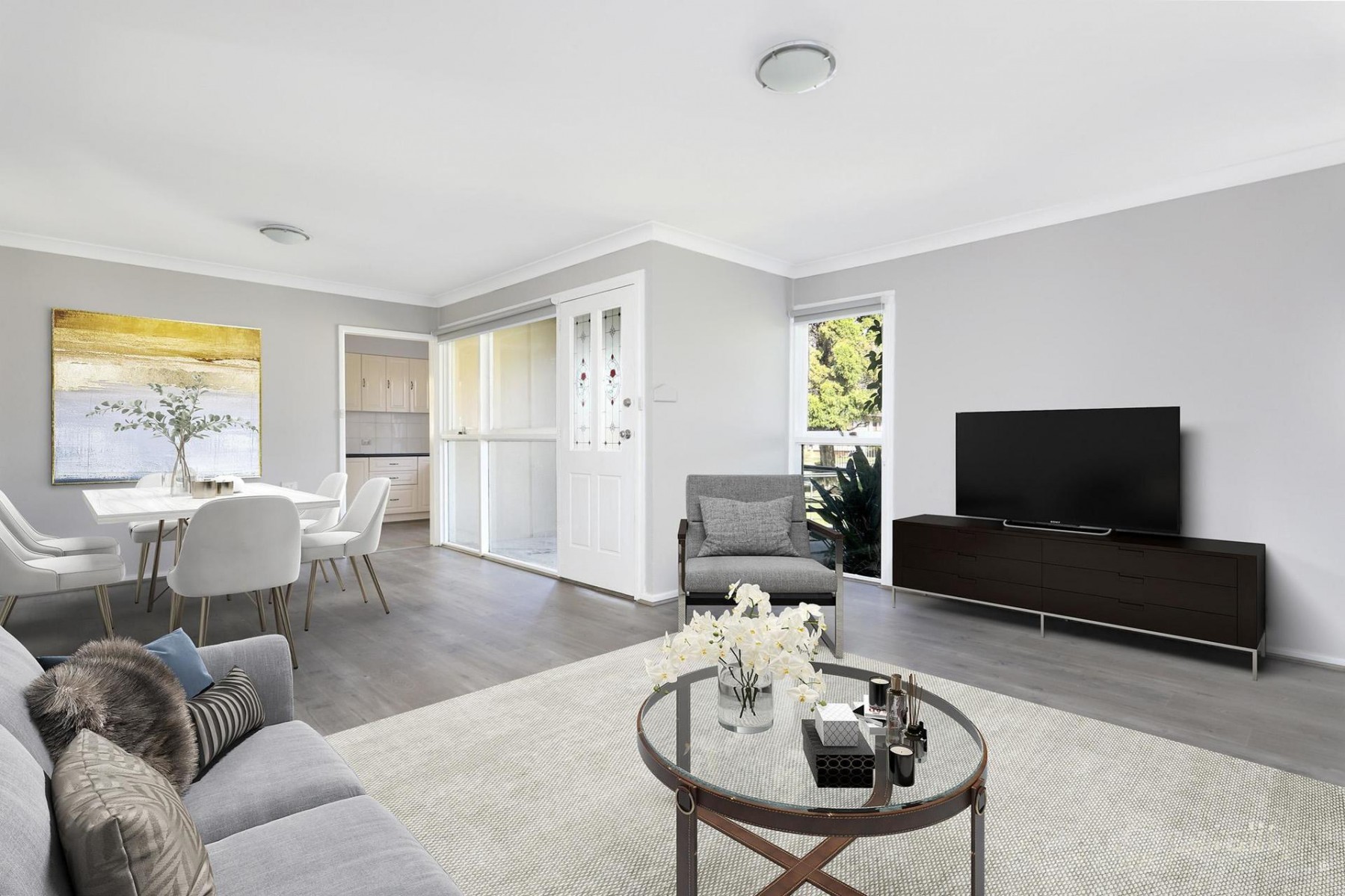 - Freshly painted in modern tones with stylish laminate flooring throughout