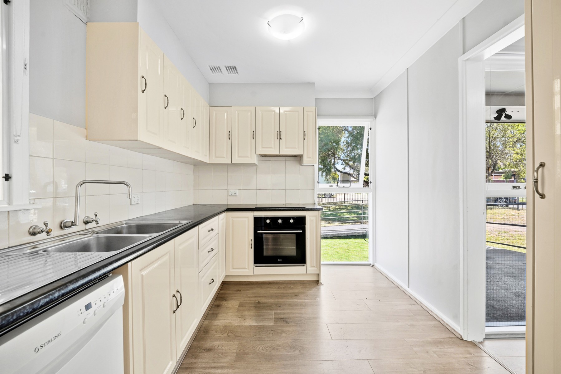 - Updated kitchen with dishwasher, oven and electric cooktop plus a double sink