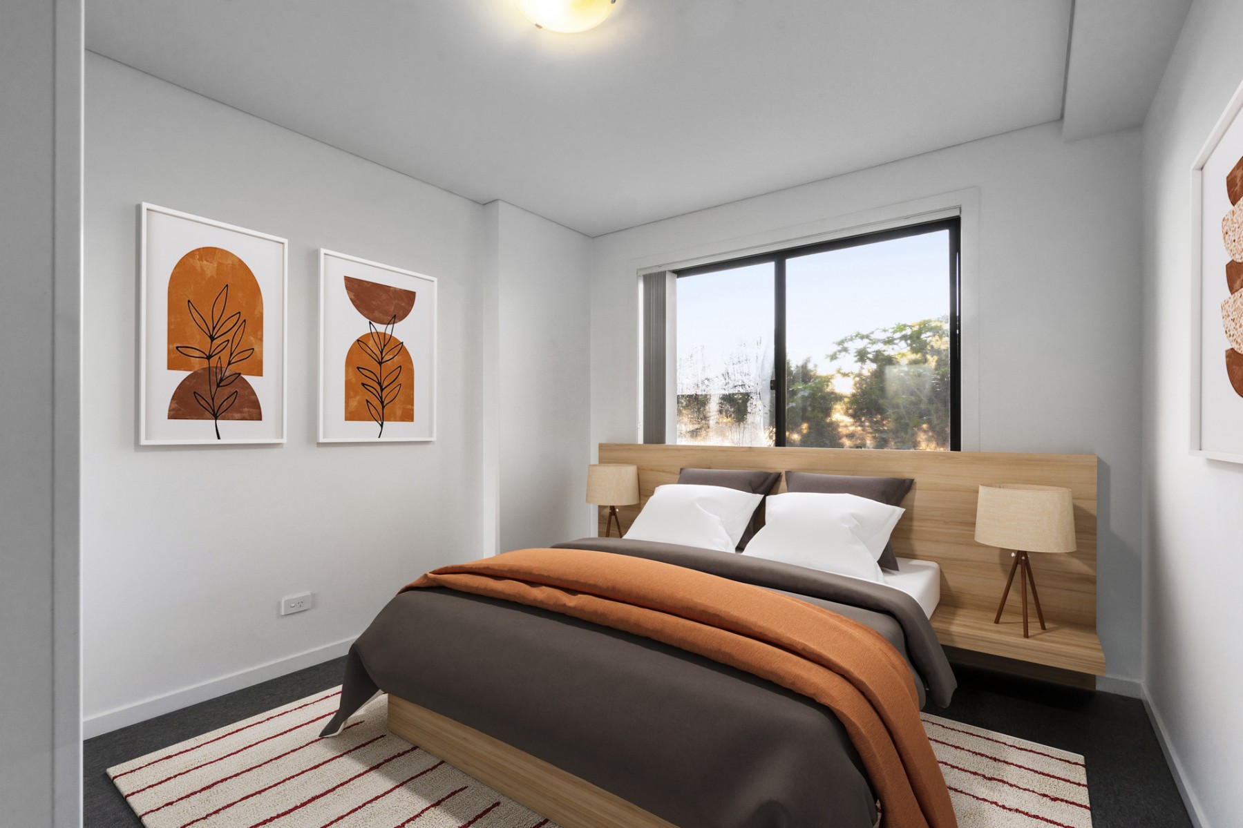 * Carpeted living areas and bedrooms