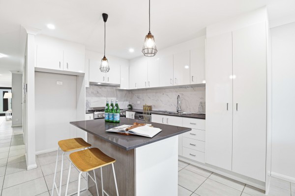 - Stunning renovated kitchen showcasing Caesarstone benchtops and island bench, double sink, Dynamicmega dishwasher and oven plus gas cooktop - a true heart of the home