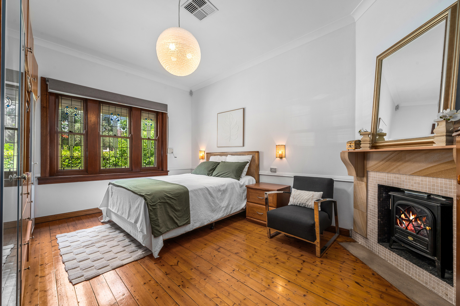 * Timber floors and original stained-glass timber windows