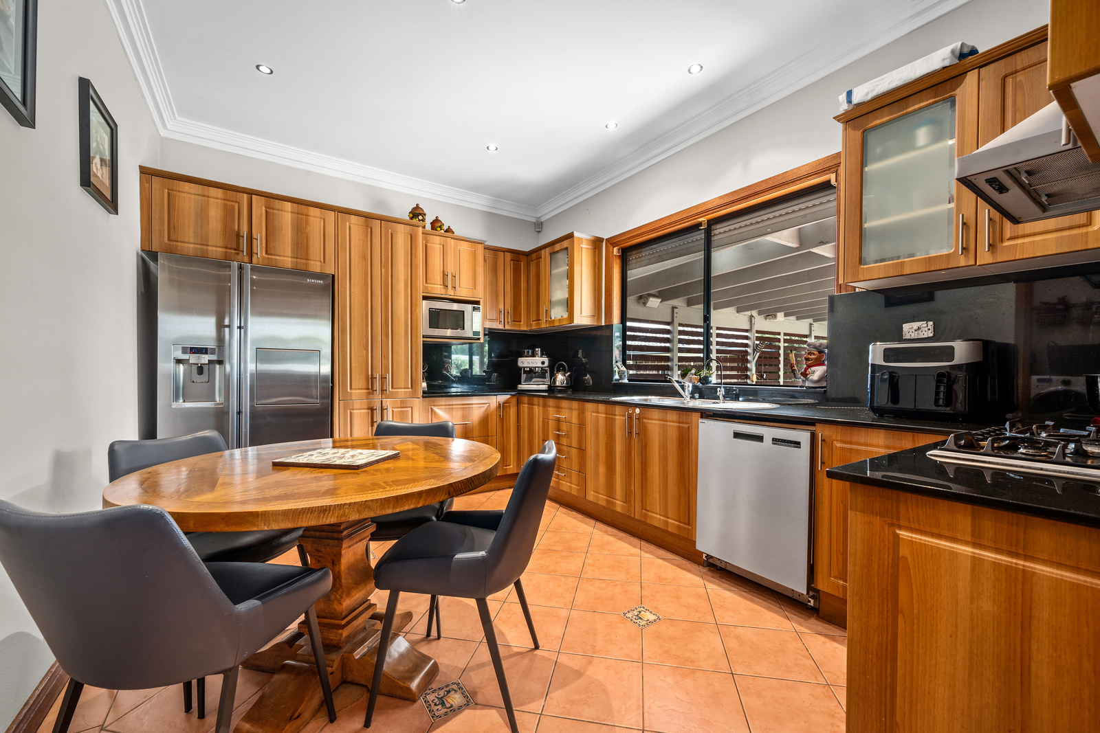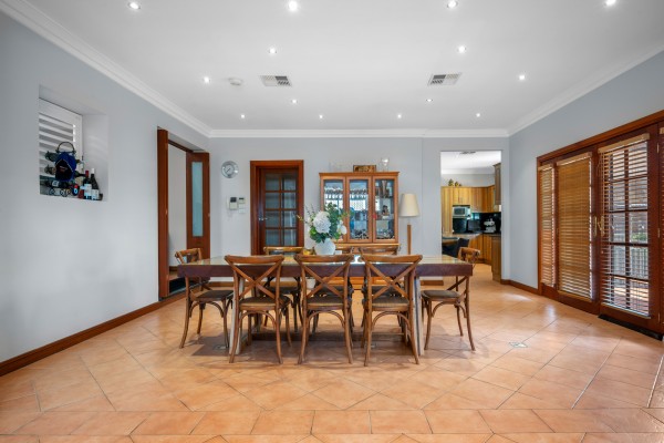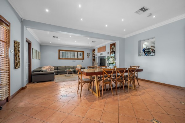 Designed for relaxed family living, the property offers multiple living areas, including a formal lounge, a large open-plan dining and family space. The classic timber kitchen with gas cooking and eat-in area forms the heart of the home and flows seamlessly to a north-facing undercover verandah, perfect for indoor-outdoor living.