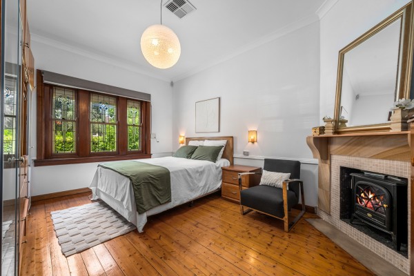 The home retains a number of original character features, including timber windows with stained glass panels, timber flooring, a charming front verandah with rendition tiles, beautifully blended with modern comforts such as ducted air conditioning, ducted vacuum, and high ceilings throughout.