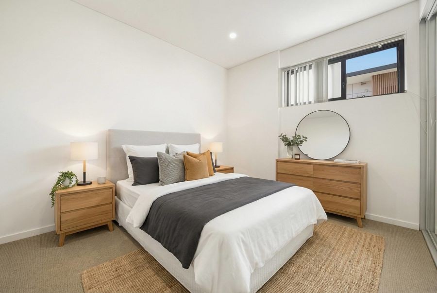 Bathed in natural sunlight, this well-appointed two-bedroom residence features built-in wardrobes to both bedrooms, with the master enjoying a private ensuite. The modern bathrooms are fully tiled floor-to-ceiling, enhancing both style and practicality.