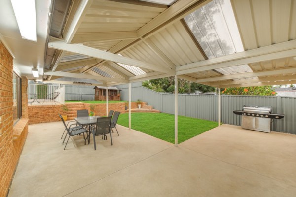 + pitched covered entertaining area overlooking backyard