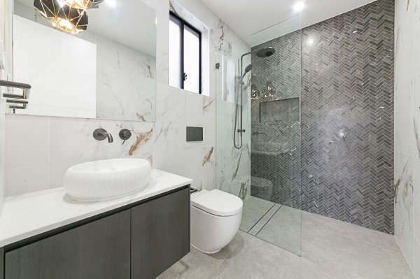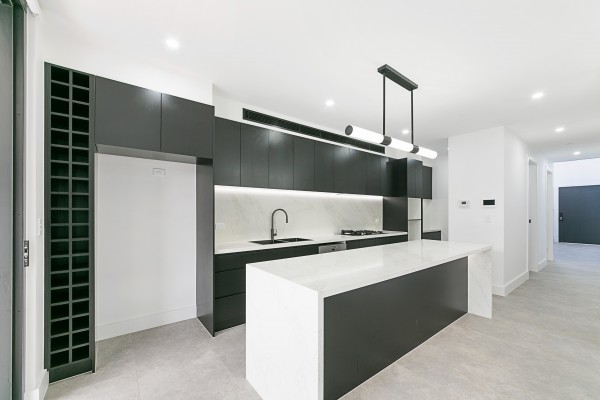 + Ultra-modern kitchen with stone benches, gas cook-top, dishwasher and breakfast bar