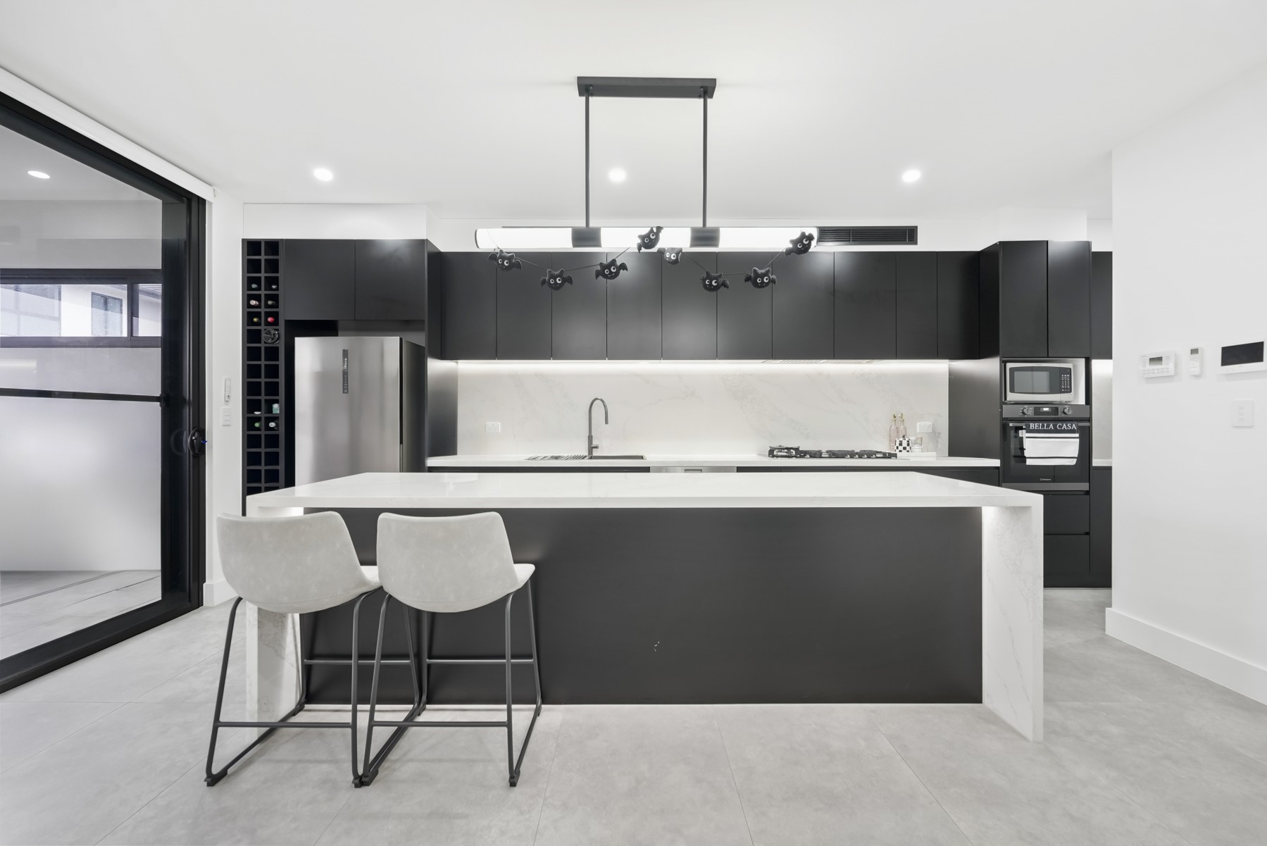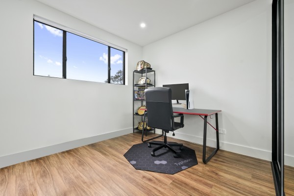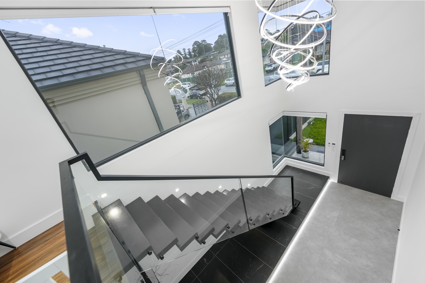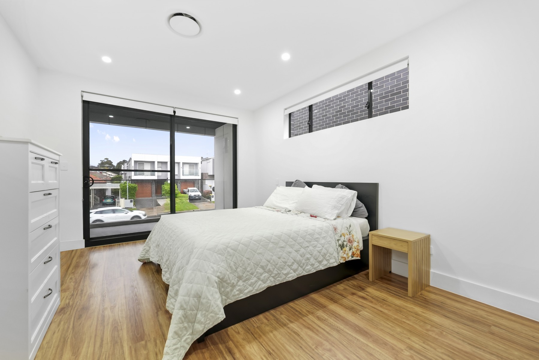 The chic gas kitchen with stone bench tops, island breakfast bar and integrated appliances including dishwasher adjoins a sunny family room which opens to a generous elevated entertaining courtyard with ceiling fans and a second kitchen with stone bench tops, ideal for entertaining or outdoor relaxation while the kids enjoy the private yard. Additional features include an internal laundry with stone bench tops, a spacious walk-in linen press, built-in robes in all bedrooms including a master with ensuite, walk-in robe and private balcony, plus an automated lock-up garage with internal access. Less than 50 metres to the bus stop, 450 metres to Merrylands Sportsground, 650 metres to school, 700 metres to the fast T-Way bus for Parramatta and Liverpool, and 850 metres to Merrylands West Shopping.