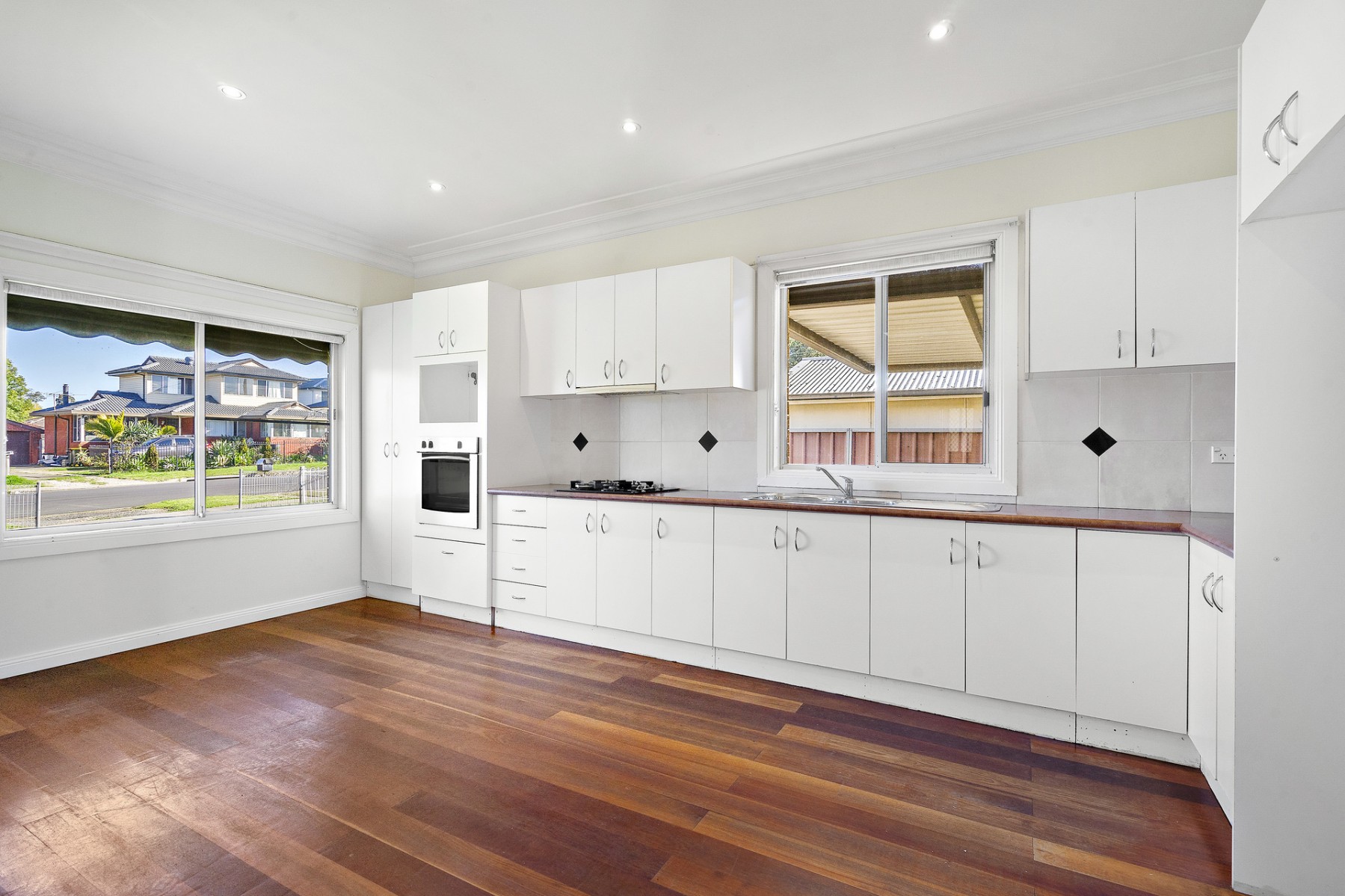 * Open plan kitchen with ample cupboard space and gas cooking