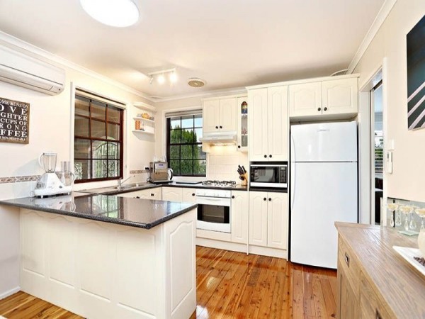 * Modern kitchen with gas cooktop & Smeg self cleaning oven