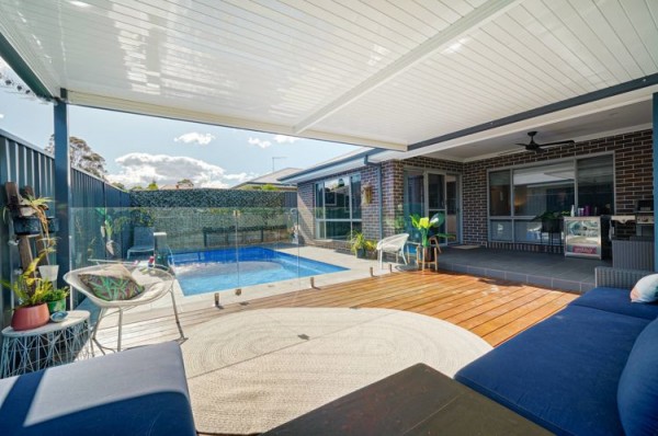 + expansive timber decked alfresco entertaining area overlooking heated inground saltwater swimming pool with 4 spa jets