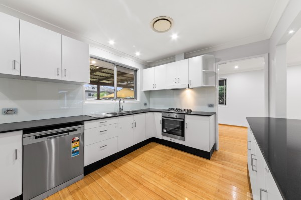 + Modern kitchen with stone benches, gas cook-top and a dishwasher