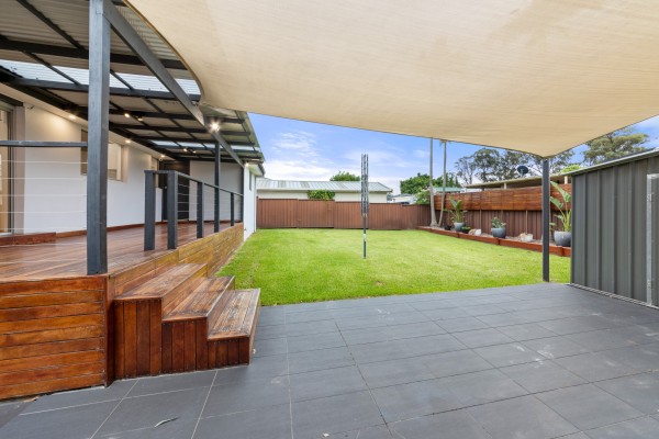 + Large covered entertainers deck overlooking the easy-care backyard