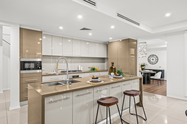 ~ Gourmet kitchen with upgraded stone benchtops, premium cabinetry, and walk-in pantry