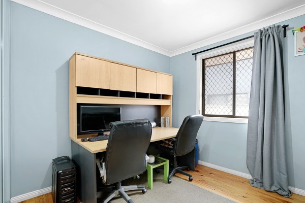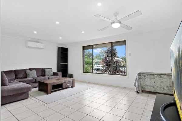 - Spacious living area to front of the property with split system air-conditioner and ceiling fan