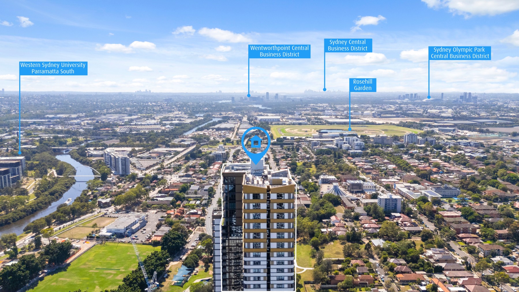 Perfectly located close to the the heart of Parramatta just 600 metres walk to the train station and only 900 metres to Westfield Parramatta, this exceptional apartment is ideal for the home buyer or investor looking for a centrally located, supremely chic home with all the benefits of premium apartment living. Set in the stylish Paramount on Parkes security building, new owners will be impressed by the opulent entry with marbled tiles and golden lifts to whisk you up to your home, or down to your security parking. Apartment features include a premium gas kitchen with Calacatta stone bench tops including dishwasher, spacious fully tiled bathrooms, an internal laundry, built-in robes in each bedroom with the master inclusive of an ensuite, and the second bedroom accessing a generous entertaining balcony with incredible easterly views to the city. The residence is made for the busy executive and growing family with amazing extras including a beautiful swimming pool, communal room with full kitchen facilities, playground, sauna and bbq area, plus new café scheduled to open in 2026. Just 200 metres to Harris Park shopping and restaurants and 150 metres to James Ruse Reserve, this home not only has all the trimmings, but the supreme position to make it just perfect. Contact us today to inspect this or a range of other exceptional, high-set apartments in this complex.