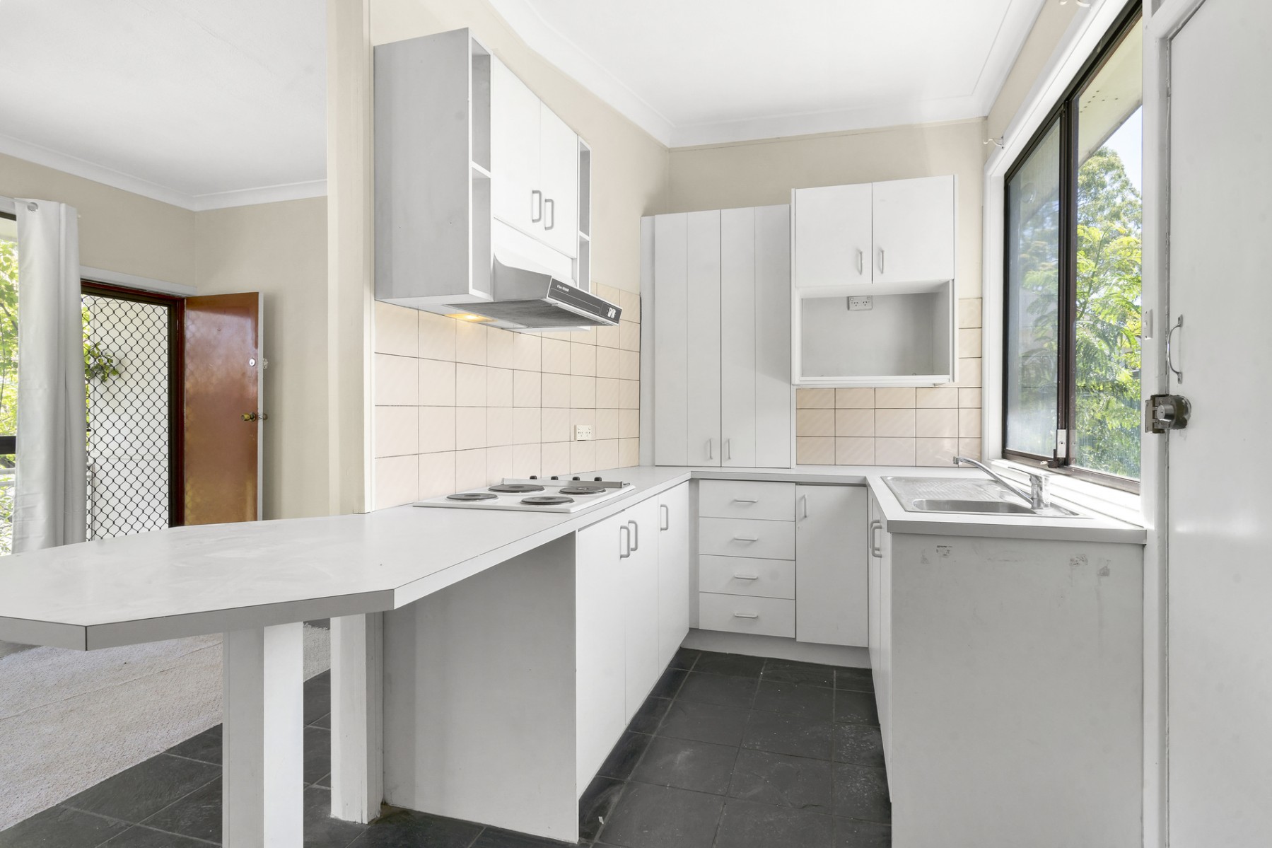 * Well-kept kitchen with electric cooking