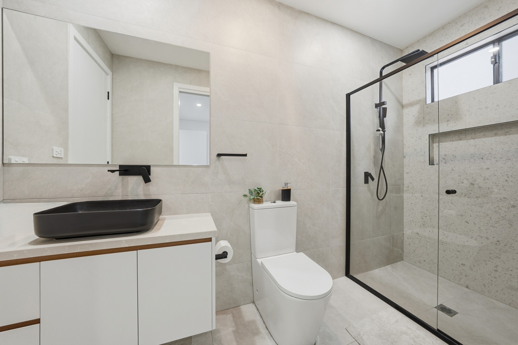 • Contemporary kitchen with stone benchtops, quality appliances, and ample storage