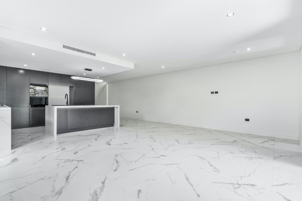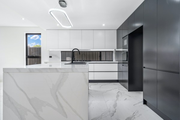 * Stone waterfall benchtop and premier stainless-steel appliances
