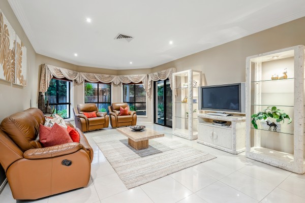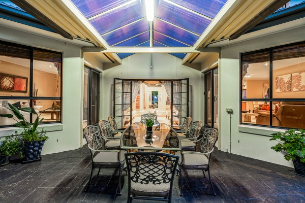 - Sunken formal lounge opens onto an entertaining area with pergola
