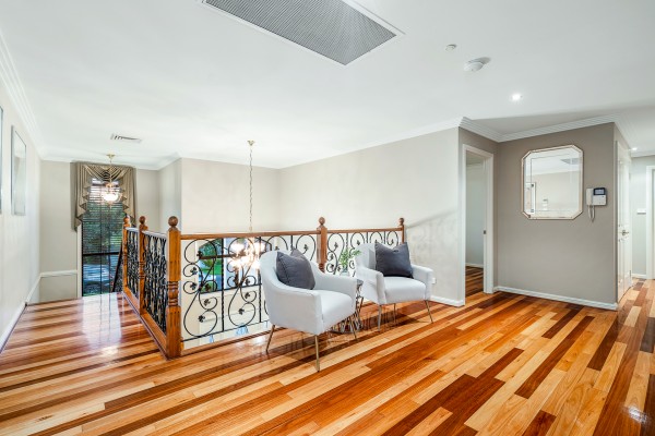 Spoiling you for space and style, enjoy multiple livening zones, media room, an informal family room and a sunken formal lounge with Impressive foyer with high ceilings. A timber-clad kitchen enhances the warmth of the interiors, while the Smeg appliances ensure everyday cooking or catering for large scale affairs is effortless. Host guests in the formal dining room or retreat outdoors for alfresco entertaining amongst the landscaped gardens. A striking Blue Gum timber staircase, accented by decorative wrought iron detailing, delivers you to the master suite on the first floor. Spacious and sophisticated, it includes a walk-in robe and ensuite. Also, three more generously sized bedrooms, a family bathroom, with a guest bedroom, bathroom and executive office/library (or 6th bedroom) downstairs.