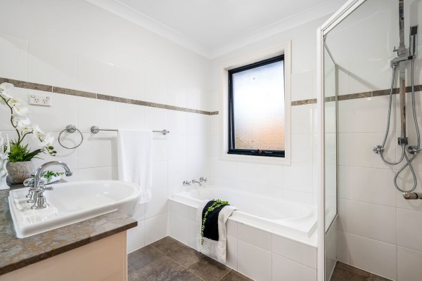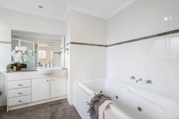 • Two pristine bathrooms, including a large ensuite with a spa bath