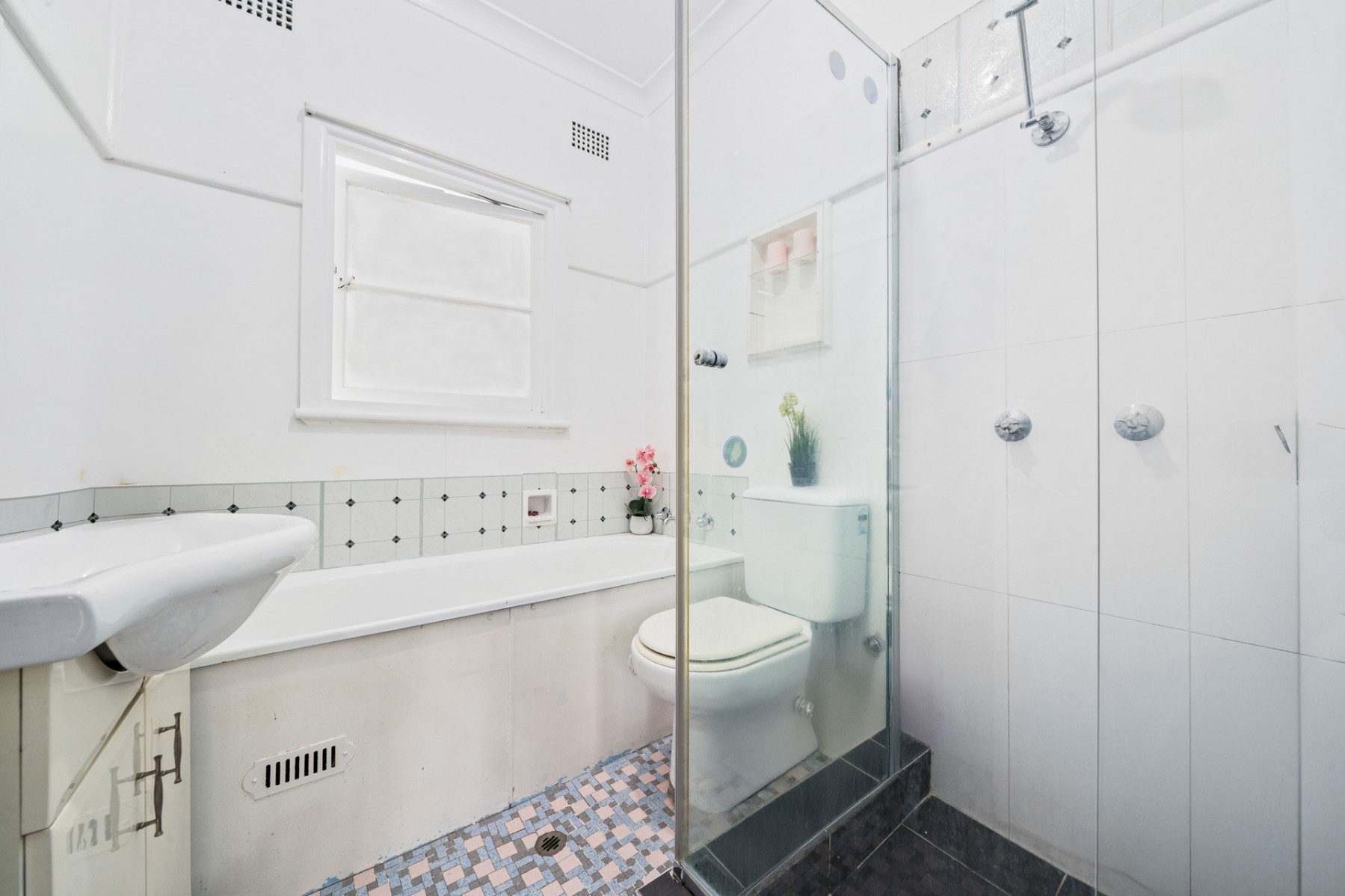 - Family bathroom with bath and shower