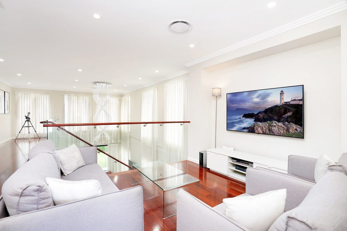 Multiple living areas including upstairs family/media room