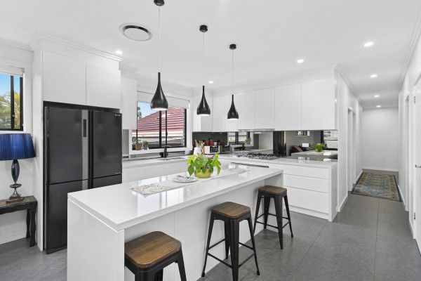 * Stunning gas kitchen with 40mm stone bench tops